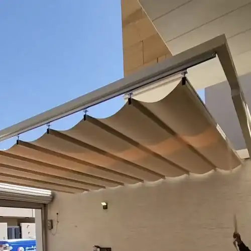 ✅ تحكم إلكتروني أو يدوي: المظلات المتحركة يمكن أن تعمل بأنظمة ذكية مثل الريموت أو حساسات ضوء.